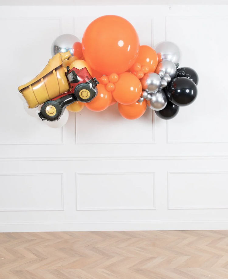 Built for bold, high-energy celebrations, our Construction Balloon Garland features striking orange, black, and silver tones — perfect for construction-themed birthdays and events.