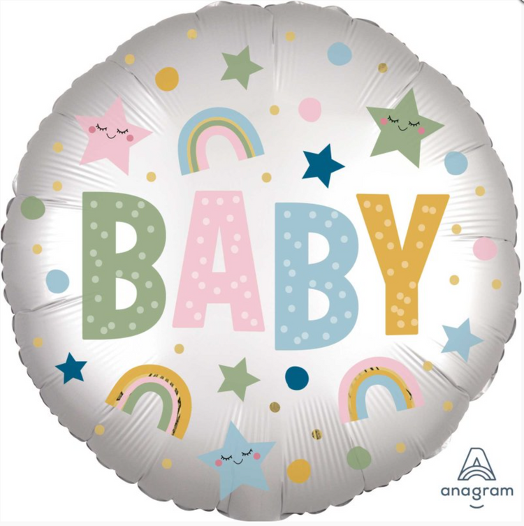 This cute baby foil balloon is a perfect addition to a balloon bouquet.